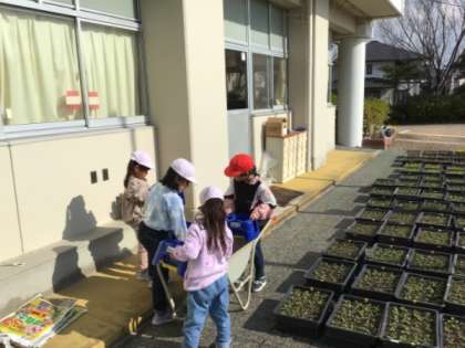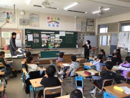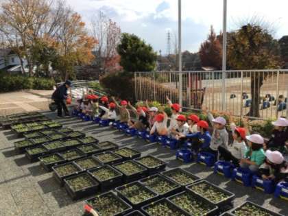 写真左は、先日行われた3年生の食育の授業の様子です。バランスよく栄養をとることの大切さを教えていただきました。写真中と右は1年生がチューリップの球根を植えている様子です。春に綺麗な花が咲くように2つずつ植えていました。
