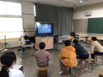 写真左はなかよしの練習風景です。ハンドベルを練習していました。写真右は5年生の練習の様子です。調べた内容をまとめたパワーポイントを発表していました。