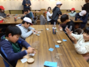 最後に香恋の館で間伐材を使った、コースターづくりをしました。