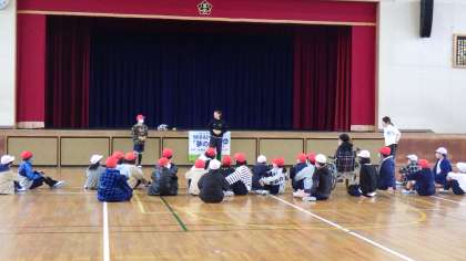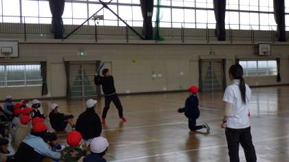 JFAこころのプロジェクト「夢先生」として、2021東京オリンピックで金メダルを獲得され、現在トヨタ自動車株式会社ソフトボール部に所属してみえる、原田のどか選手にお越しいただきました。夢の教室では、ゲームやトークを通して、「夢を持つことや、その夢に向かって努力することの大切さ」「仲間と協力することの大切さ」について教えていただきました。写真はゲームの様子です。
