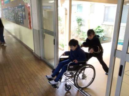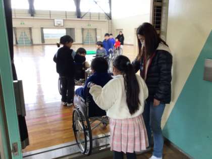今日は3年生で福祉実践教室が開かれました。社会福祉協議会にお願いし、車椅子体験をさせていただきました。見ることと実際に体験することの違いにびっくりしながら学びを深めました。