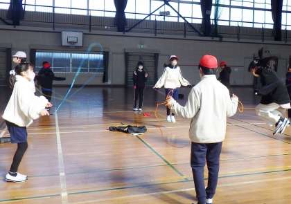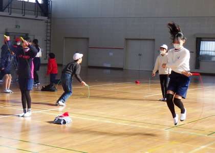 来週行われるなわとびグランプリ(記録会)に向けて、今週からなわとび強化週間(ジャンピングチャレンジ)が始まる予定でしたが、雨天や運動場のコンディション不良のために、全校での練習が行えませんでした。しかし、子どもたちは、ひまわりタイムやはつらつタイムに体育館で自主練習を行っていました。本日のひまわりタイムの体育館配当は高学年でした。あやとびや交差とび、二重とびだけでなく、はやぶさや後ろ二重とびなどの難しい技に挑戦している子もいました。