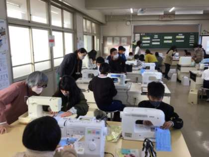 講師に地域の皆さんにお越しいただき、ミシンの使い方を教えていただきました。