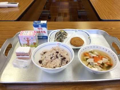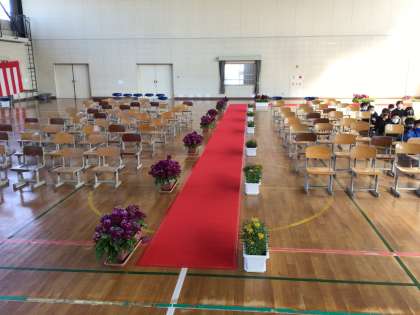 明日が卒業式、今日は卒業を祝い、給食も赤飯やケーキが出されました。会場も4、5年生が準備をしてくれました。明日は素敵な卒業式にしていきましょう。