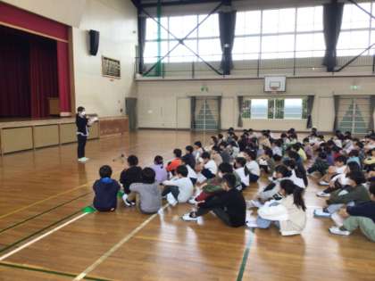 校長からは、あいさつの話や今年の目標「やってみよう」の話がありました。また、生活委員さんから、今月の生活目標が「あいさつをしよう」であることや、タブレットの使い方について校務主任の先生から連絡がありました。どの児童も姿勢よく話を聞くことができました。