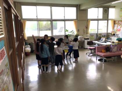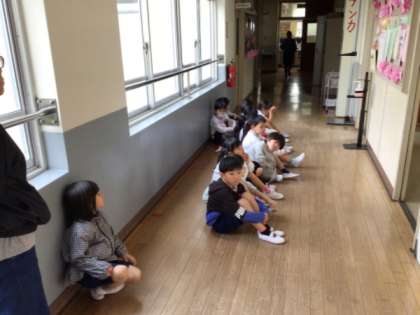 聴力検査の様子です。廊下でも静かに順番を待つことができました。