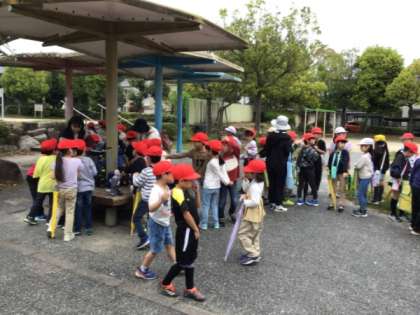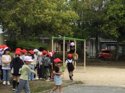 今日は1、2年生となかよしのみんなで校外学習へ出かけました。3本松公園で、いろいろな秘密を探したり、遊んだりしました。