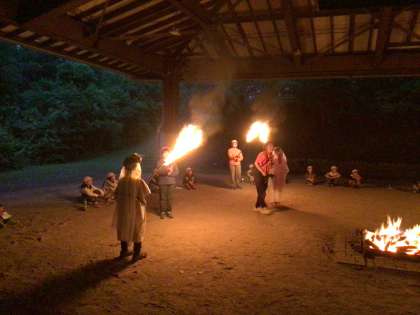 キャンプファイヤーが行われました。それぞれの学校で出し物を行って盛り上げてくれました。