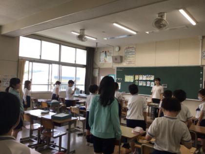 6月3日(月) 朝の会では、どのクラスも元気に挨拶をしたり、静かに先生の話を聞いたりしていました。