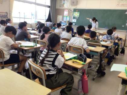4年生は明日の公共施設見学についての学習をしました。6年生は社会で縄文時代の学習をしていました。