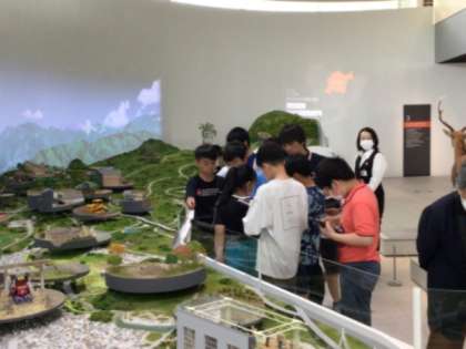 6年生が博物館でアクティブラーニングツアーを行いました。テーマは「豊田の古代人の生活を探ろう」です。博物館の展示物を見る様子です。楽しそうにまわっていました。