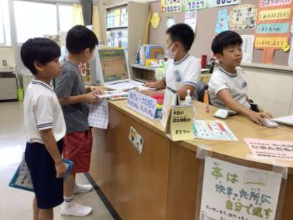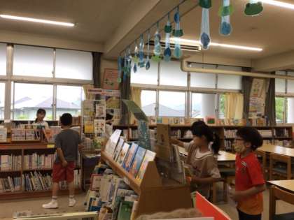 あじさい読書週間が始まっています。休み時間には、本を借りるたくさんの子どもたちが図書室を訪れています。