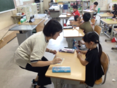 1年生では、算数の計算カードで足し算引き算の計算に取り組んでいました。