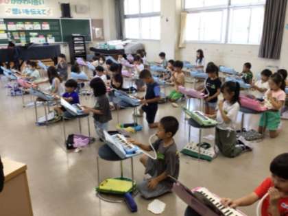 写真左はなかよし1組の授業の様子です。百人一首をしていました。写真中はなかよし2組の様子です。個別に学習を進めていました。写真右は2年生音楽の様子です。鍵盤ハーモニカで音のそろった演奏をしてくれました。