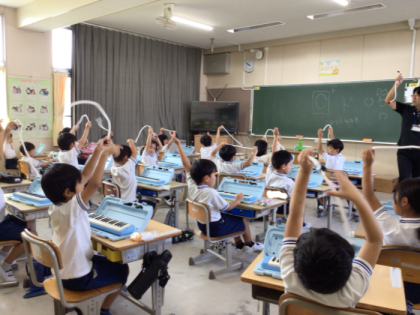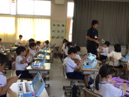 1年生が鍵盤ハーモニカ講習会を受けました。吹口の付け方や息の入れ方など、基本的なことから丁寧に教えていただきました。楽しく学ぶことができました。
