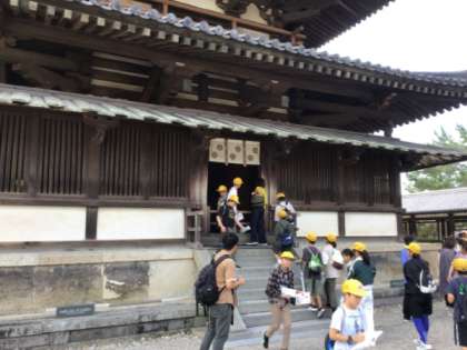 修学旅行続きです。晴れています。法隆寺を見学しました。五重の塔をはじめたくさんの日本最古の建築物に圧倒されました。