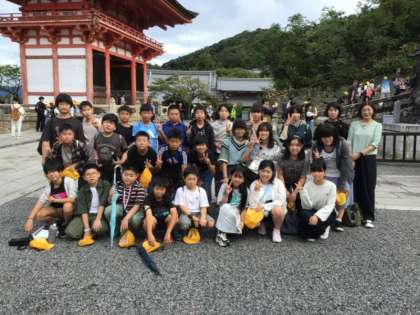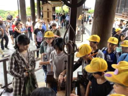 修学旅行続きです。朝一番で清水寺へやってきました。人通りも少なく、気持ちの良いスタートです。清水の舞台に驚き、お水取りもやることができました。このあと班ごとにお土産を見て集合します。