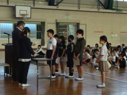 校長からは、今の学年になってできるようになったこと、頑張ったことを振り返って後期につなげてほしいことなどが話されました。