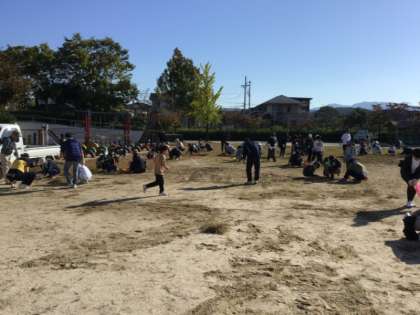 今日は地域学校共働本部主催のクリーン活動が行われました。朝から多くの方にお越しいただき、草集めや草取りの作業をしていただきました。おかげで、大変きれいになりました。ありがとうございました。