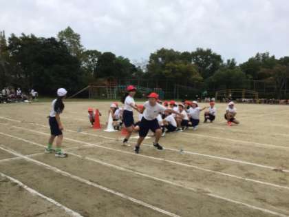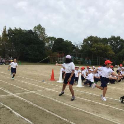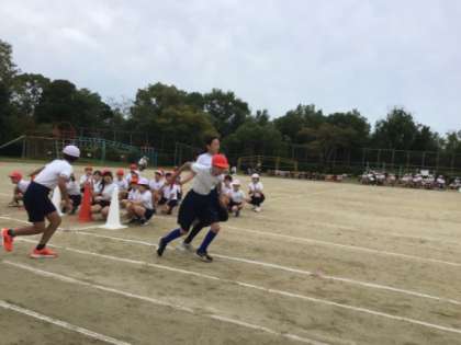 5、6年生の全員リレーです。バトンを通して心をつなぎました。
