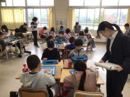 子どもたちはタブレットの発表ノートを上手に使って自分の考えをまとめていました。