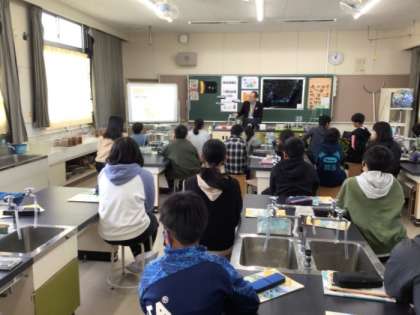 今日は6年生で講師の先生をお招きして、ストップ温暖化教室が開かれました。