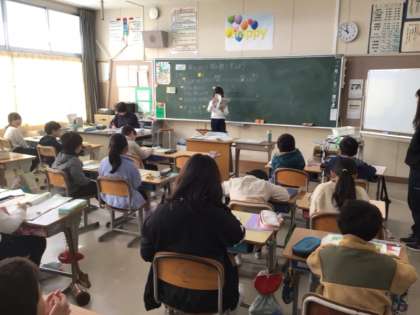 写真は3年生の算数の様子です。文章問題を図を使って考えていました。写真右は4年生の社会の様子です。中国地方の特徴ある施設をタブレットを使って調べていました。