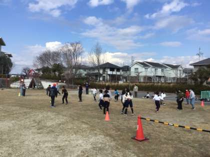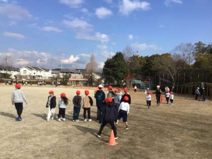 今日は、ファミリー班で一緒に遊びました。「おにごっこ」や「だるまさんが転んだ」などみんなで遊べるものを工夫していました。ポカポカと暖かい陽気で元気に遊べました。