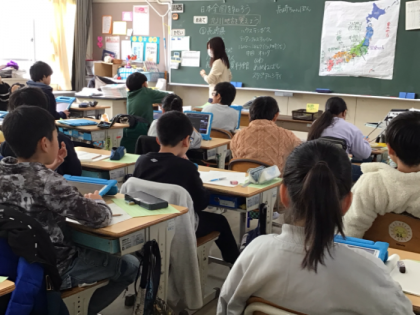 4年生は社会で九州地方の長崎県について調べました。5年生は書写て「希望」という字を清書しました。