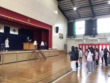 今日は、修了式でした。校長から修了証を受け取り、意見発表も行われました。代表の児童は、1年間頑張ったことや、来年度の目標を堂々と発表しました。