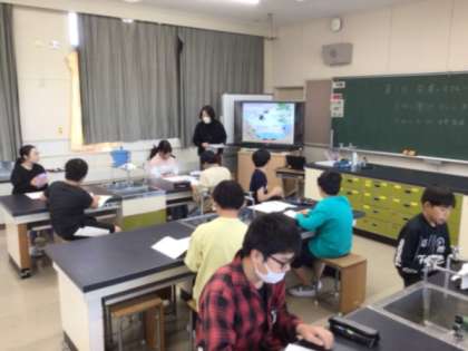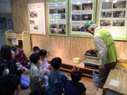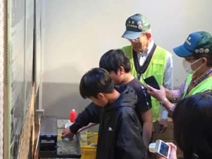 益富交流館、蛍友会の方々にお越しいただき、ホタルの生態や育て方を教えていただきました。その後、カワニナを水槽に放しました。これから飼育が始まります。