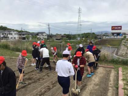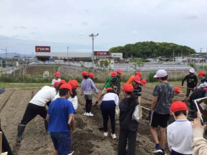 今日は5、6年生が畝づくりを行いました。来週さつまいもの苗を植えるため事前に作業をしてくれました。慣れないスコップやクワを使っての作業でしたがしっかりと準備を整えてくれました。ありがとう。