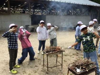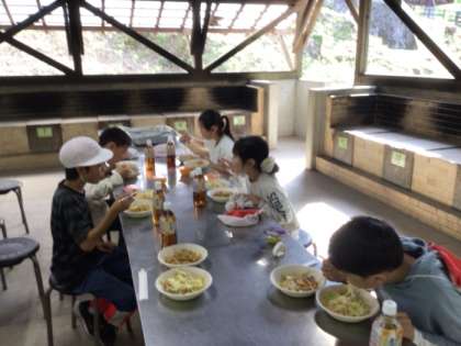 火起こし体験、野外炊事の様子です。おいしい焼きそばでした。塩味とソース味どちらが良かったかな?