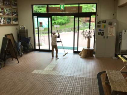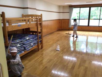 奉仕活動の様子です。来た時よりも美しく。感謝の気持ちを込めて掃除をしています。