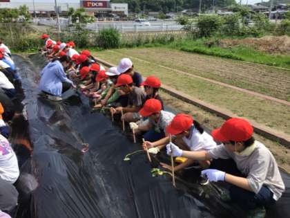 今日は、ファミリーでさつまいもの苗を学校の畑へ植えました。1年生も初めての体験でした。秋の収穫が楽しみですね。