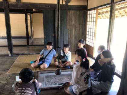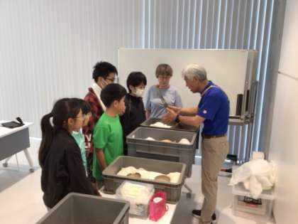 石器を触ったり、縄文時代や弥生時代の服を着たりして、楽しく学びました。
