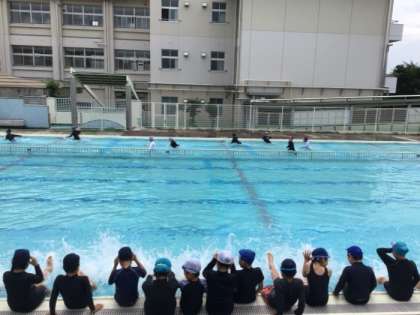 今日はプール開きでした。1年生、6年生、3年生、5年生が今年度初めてのプールへ入りました。それぞれ大きな声で楽しそうに水とたわむれていました。