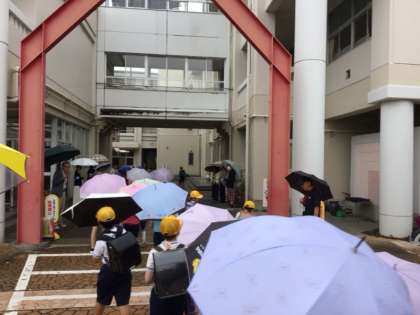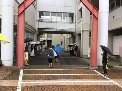 今日は早朝から、PTA、子ども会、民生委員の皆さまが挨拶運動をしてくださいました。