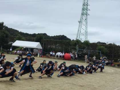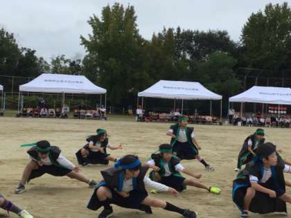 3・4年生、表現 ☆競遊 全力前進 どっこいしょ!〜ソーラン節と大玉転がし〜 の様子です。