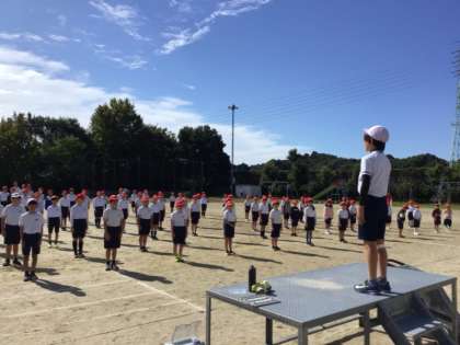 今日は天気も晴れて、全校練習を行いました。元気な掛け声とともに会閉会式の練習ができました。
