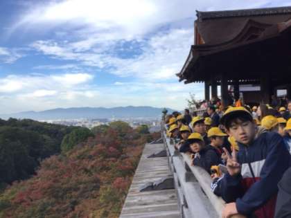 清水寺の様子です。清水の舞台から見下ろすと京都の街並みと紅葉がきれいに見えました。今日も晴天です。