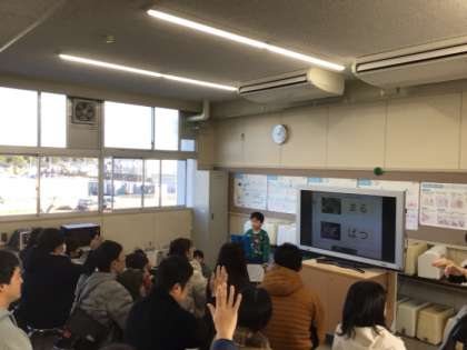 写真は2年生が動物クイズを出している様子です。