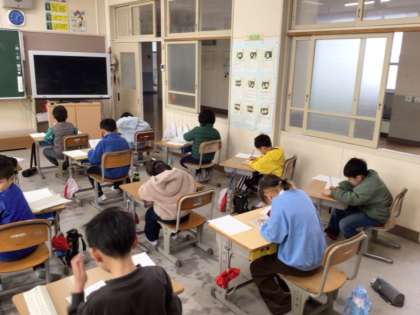 2、3時間目は書き初め大会です。どの児童も練習してきた成果を出そうと、姿勢良く取り組んでいました。