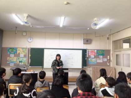 今日は壁画家の松井エイコさんをお迎えし、6年生で平和学習が行われました。
