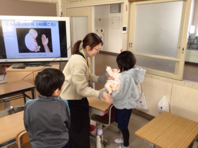 1月26日に2年生で命の授業が行われました。親子応援課より助産師の先生にお越しいただき、命の誕生についてお話をいただきました。赤ちゃんの人形を実際にだっこして命の重さを感じました。