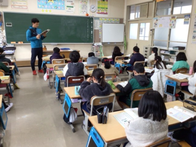 授業の様子をお伝えします。写真上は1年生国語の様子です。手紙の書き方を考えていました。