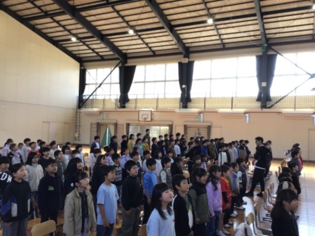 姿勢や礼のタイミングや呼びかけ、合唱や校歌の練習を行いました。