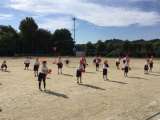5年生と6年生の練習風景です。 トーチワークの練習と並行して綱引きのやり方を教え...