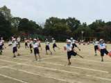 3、4年生の80m走です。コーナーをうまく走り切りました。