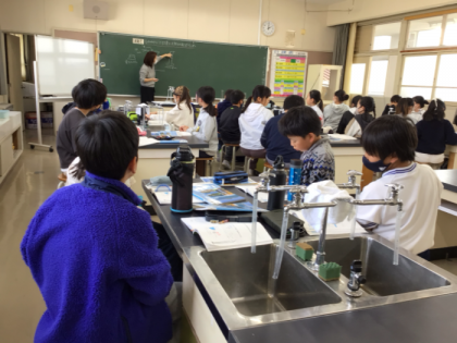 5年生の理科の授業です。ものが水に溶ける量には限りがあるのかどうかを実験をして調...